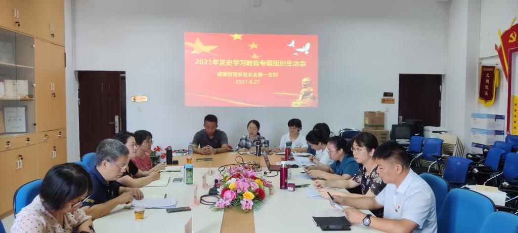 2021年8月27日,健康管理系党总支第一支部召开党史学习教育专题组织生活会,院领导陈贞健同志以普通党员身份参加,学校第四督导小组莅临本次会议指导工作。