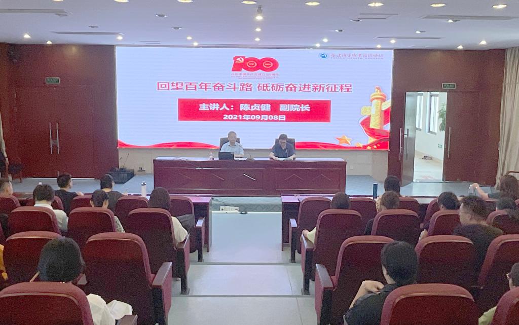 回望百年奋斗路,砥砺奋进新征程。为深入推进党史学习教育,重温党的光辉历程,传承红色基因,赓续红色血脉,2021年9月8日,在实训楼四楼报告厅,陈贞建副校长为健康管理系师生党员上党课,本次会议由健康管理系党总支书记黄曦主持。