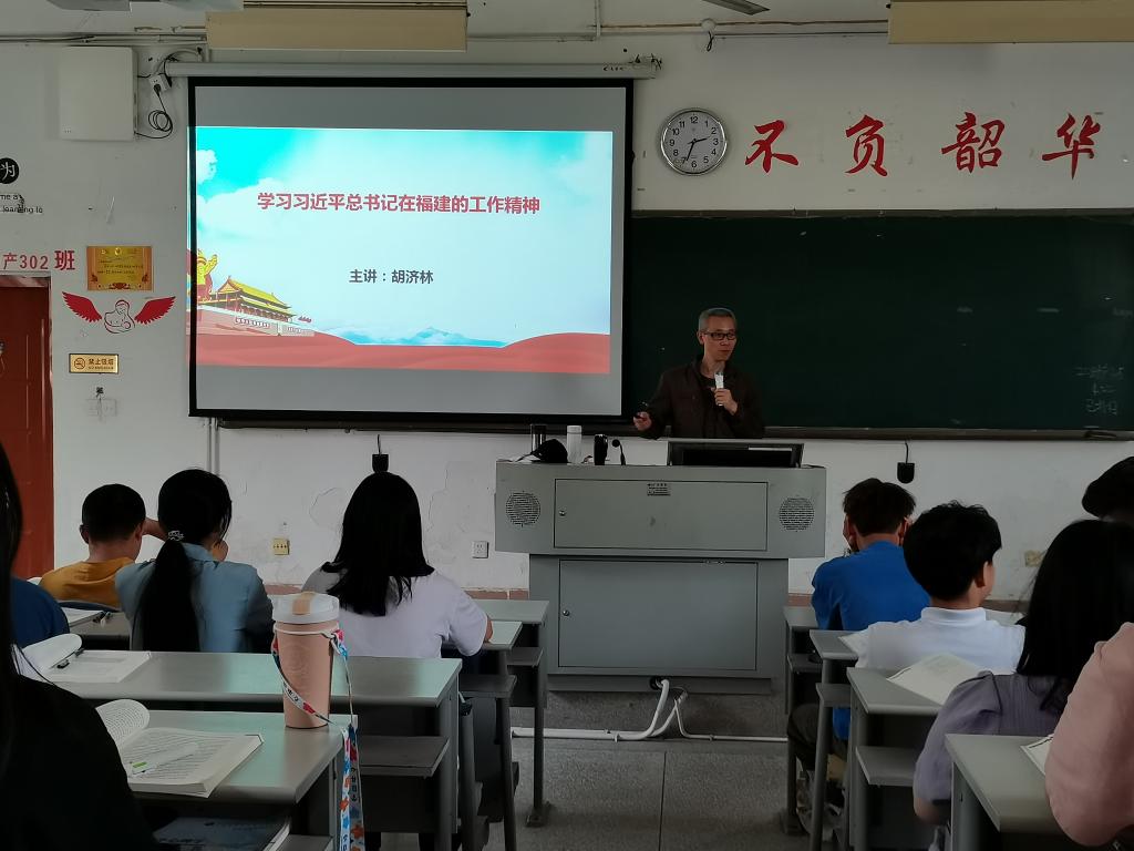 2021年4月23日下午,胡济林老师在护理107教室为20康复301、302班举行“学习习近平总书记在福建的工作精神”专题宣讲。宣讲中,胡济林首先简要介绍了习近平总书记在闽工作17年半的基本情况,接着从“为官一任 造福一方”“重视发展高等教育”“惩治腐败 整顿吏治”等三个方面讲述习近平总书记当年在福建的一些感人故事以及从中折射出习近平总书记的治国理念和工作作风。胡济林通过理实结合的方法,用抑扬顿挫的语言,再现习近平总书记当年场景,让同学们感受到浓烈的公仆情怀、求实作风、奋斗精神。