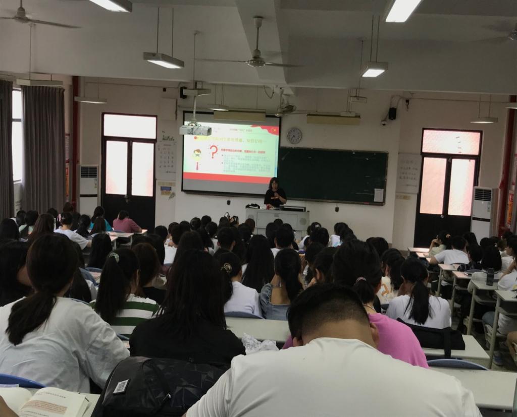 2021年5月10日下午,习近平新时代中国特色社会主义思想读书社宣讲团在胡济林老师指导下,前往20级药学305-307班开展宣讲活动,此次宣讲人是李诗婷,她宣讲的主题是“学习传播‘四史’ 砥砺奋进前行”。