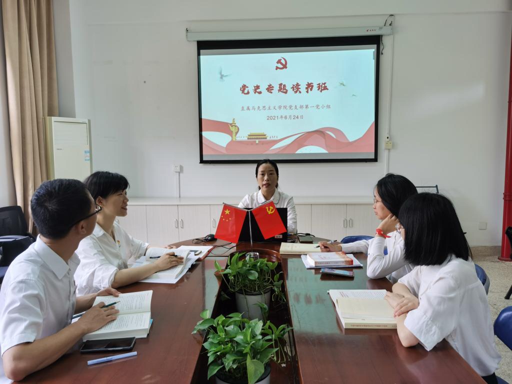 在庆祝中国共产党成立100周年之际,2021年6月24日上午,直属马克思主义学院党支部第一党小组在行政楼107会议室组织开展党史专题集中学习。本次活动由第一党小组组长杨盈同志主持,第一党小组成员参加了这次活动。