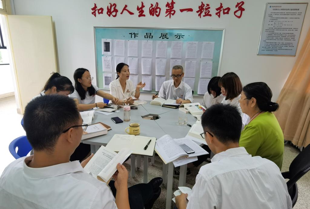 首先,魏立娜同志领读了《习近平新时代中国特色社会主义思想学习问答》中“为什么要着力培养担当民族复兴大任的时代新人”部分内容。在当今中国,高校教育的一项重要使命,就是引导学生自觉把个人的理想追求融入党和人民、国家和民族的事业之中,树立与这个时代主题同心同向的理想信念,勇于担当这个时代赋予的历史责任。