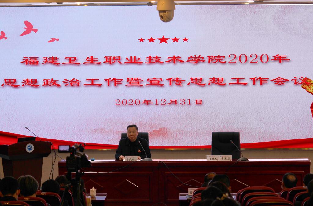曾武祈指出,校党委在过去一年凝聚思想向心力,坚持理论武装头脑;增强政治穿透力,坚守意识形态阵地;永葆育人生命力,强化使命责任担当;查找问题补短板,正视差距与不足。他强调,2021年做好思想政治工作与宣传思想工作,要不断加强党的领导,形成党政齐抓共管新格局;要坚持立德树人,形成思想政治教育新水平;要强化规范管理,形成服务管理育人新高地。