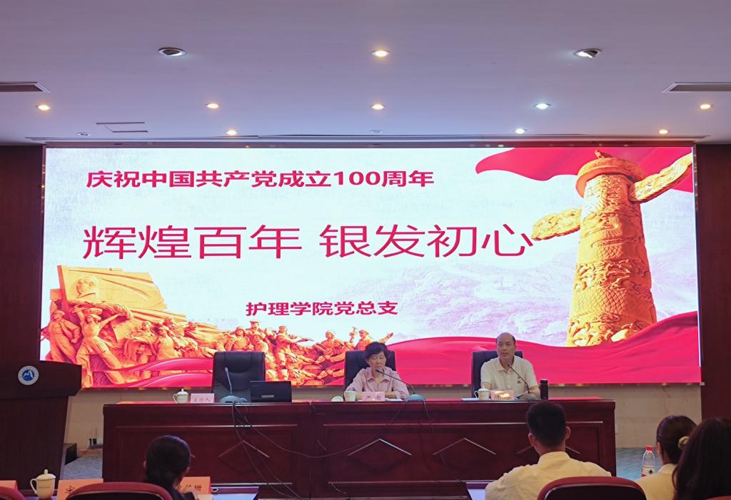 2021年5月6日,护理学院党总支在实训楼四楼报告厅举行“辉煌百年 银发初心”主题党日活动。本次活动邀请了关工委主任严肃、副主任陈雄来校授课。副校长黄铭珊、学生工作部部长宋维,组织统战部、人事处、护理学院党总支全体教职工党员及护理学院党总支入党积极分子共200余人参加了此次活动。