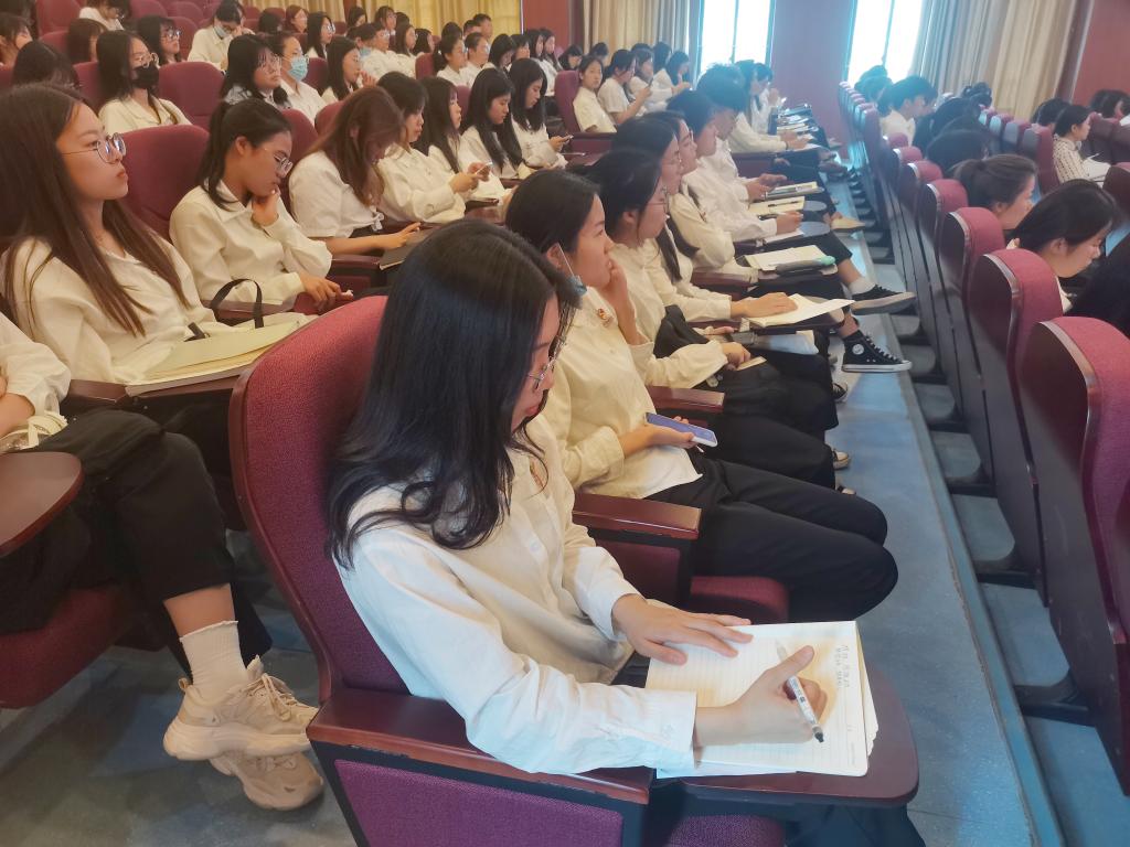 严肃老师结合党史以及卫生事业各个时期在党的领导下的发展史从“开天辟地”、“改天换地”、“翻天覆地”、“惊天动地”四个方面讲述了中国共产党一百年来的辉煌历史,中国共产党成立以来,团结带领全国各族人民干成了许许多多惊天动地的大事难事,取得了彪炳史册的丰功伟绩,让中华文明在现代化进程中焕发出新的蓬勃生机,让科学社会主义在21世纪焕发出新的蓬勃生机,使中华民族焕发出新的蓬勃生机。