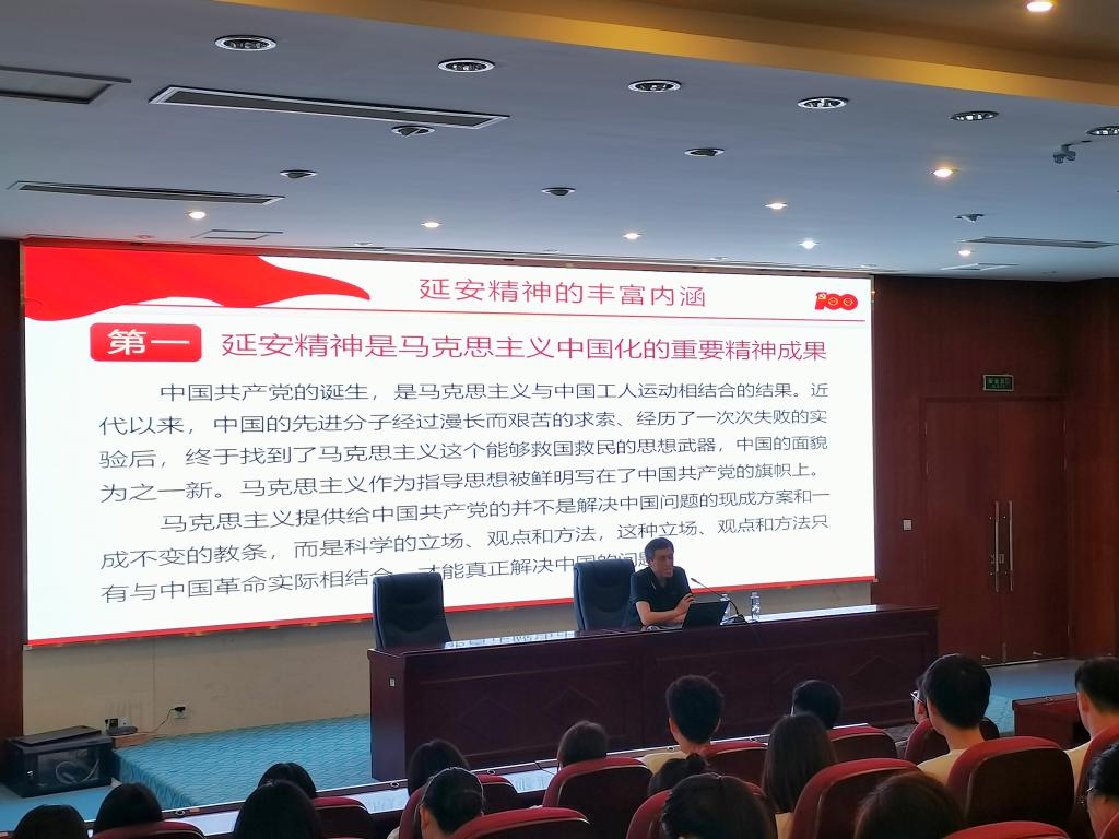 2020年4月,习近平总书记在陕西考察时指出:“延安精神培育了一代代中国共产党人,是我们党的宝贵精神财富。”为了让学子们能够深刻认识、了解延安精神,洪聿荣从“什么是延安精神”、“延安精神的丰富内涵”、“青年学子要从延安精神中学到什么”这几个方面结合自己的亲身经历进行阐述。同时还勉励青年学子们要保持“心之所向,素履以往”的理想信念;要提升“人生在勤,不索何获”的学习理念;要提升“砥志研思,精进不休”的学习动力。用更高的标准来严格要求自己、磨砺自己,继续传承和发扬艰苦奋斗、知难而上、奋勇前行的精神,让青春无悔成就人生大我。