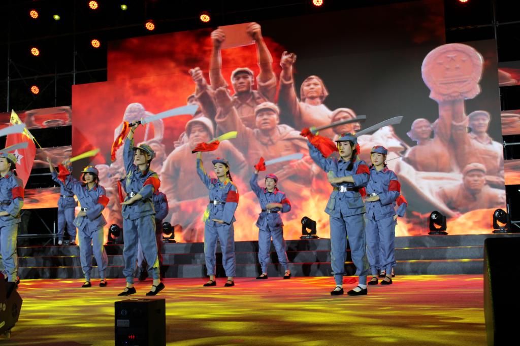 红色主题舞蹈《练兵舞》演绎了海南农村女孩在我党领导下,树起妇女解放运动旗帜的故事。