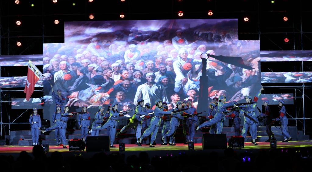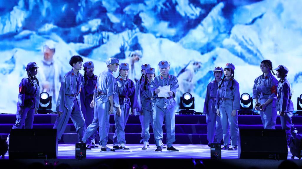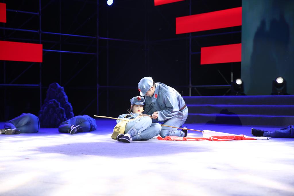 皑皑皓雪,巍巍井冈。主题情景表演《星星之火可以燎原》讲述了井冈山“凝心铸魂”和中药材“凝血救命”的感人事迹。