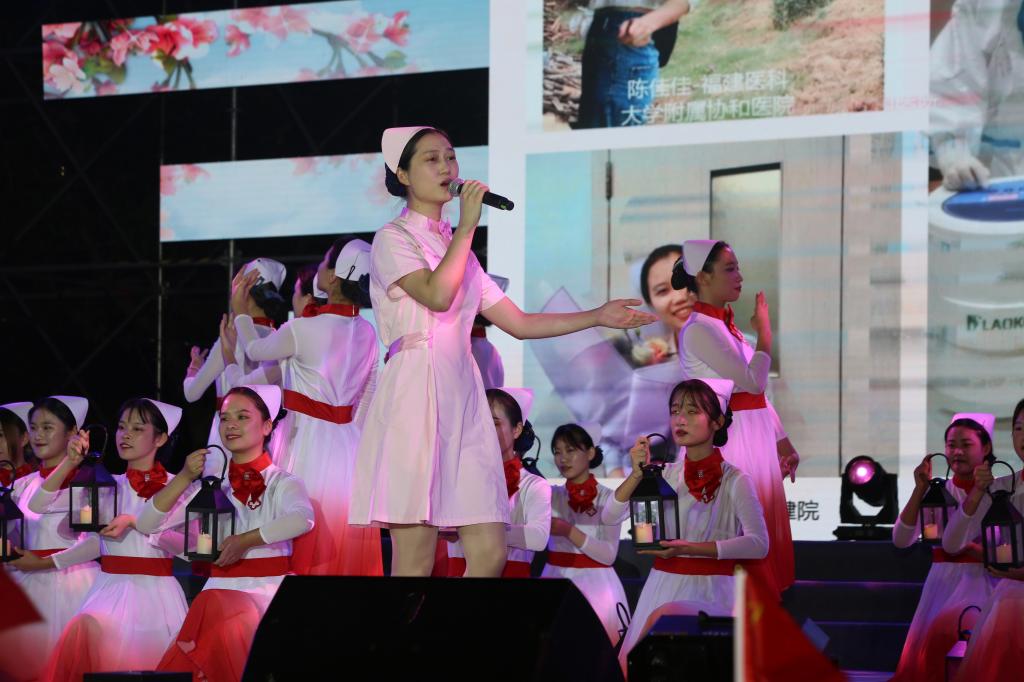 歌伴舞《提灯女神》带领我们回顾了福建支援湖北武汉医疗队员在金银潭医院夜间巡房的情景。