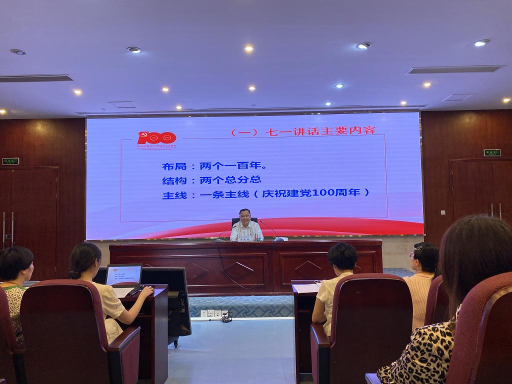 9月10日下午,党委书记曾武祈以“触摸历史温度 奏响青春强音”为题,在实训楼四楼报告厅专题宣讲习近平总书记“七一”重要讲话精神,组织统战部党支部全体党员参加学习。