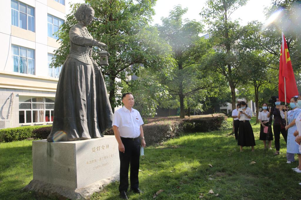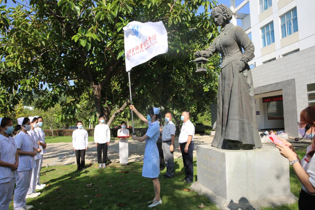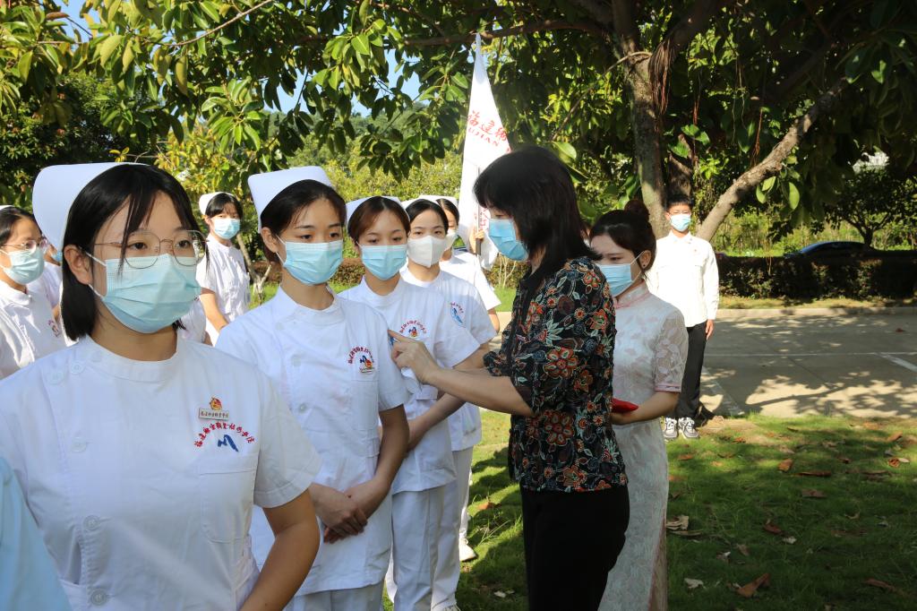 今天上午,我校护理学院54名师生在校内南丁格尔像前举行出征仪式,他们将支援福州市全员核酸检测应急演练。出征仪式上,学院党委书记曾武祈、校长许能锋分别为出征队伍授党旗、校旗。党委副书记李美华带领护理学院班子成员为队员贴上校标臂章。党委书记曾武祈寄语队员:一是苟利国家生死以,岂因祸福避趋之。希望同志们发扬习近平总书记“七一”重要讲话精神,发挥强国有我、请党放心的担当;二是纸上得来终觉浅,绝知此事要躬行。希望同志们保持严明的纪律,发扬优良的传统,展现精湛的技术;三是长风破浪会有时,直挂云帆济沧海。祝愿同志们不辱使命,展现青春之风,圆满完成任务。参加出征仪式的还有党委副书记李美华和护理学院班子成员。
