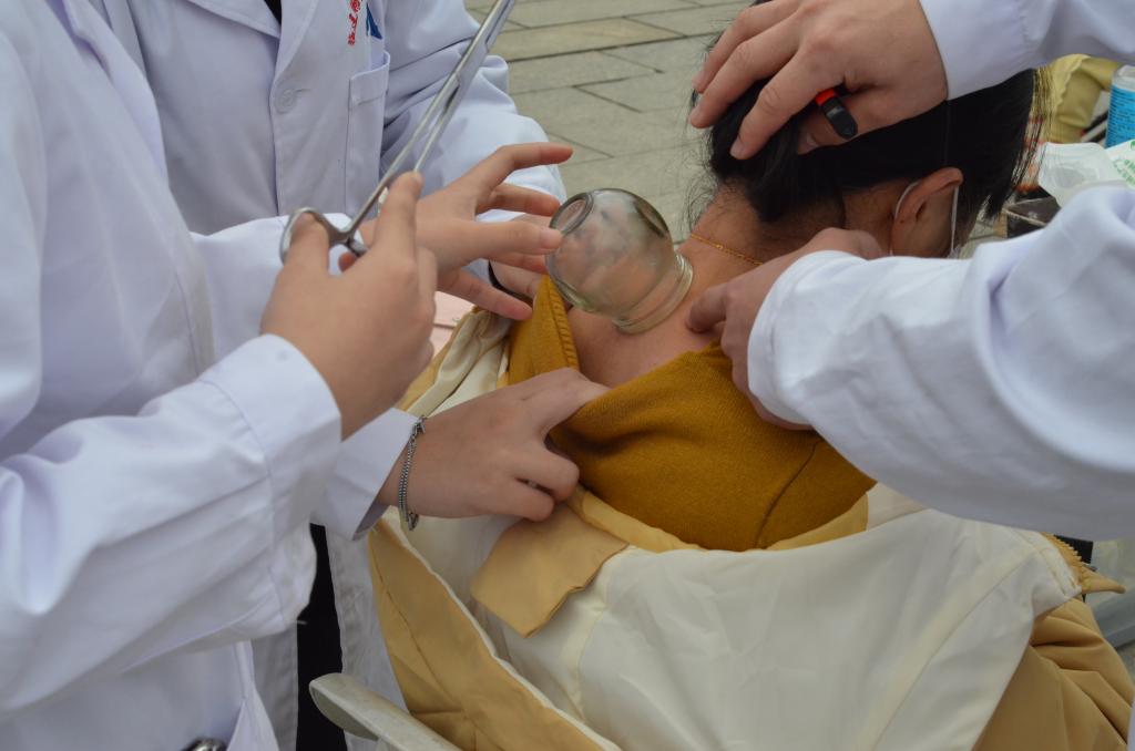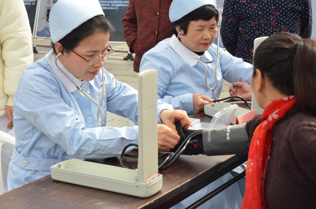 活动中,党员教师带领学生志愿服务队成员耐心地为居民测血压、量血糖、推拿、拔罐,普及高血压和糖尿病等慢性病的防治知识。