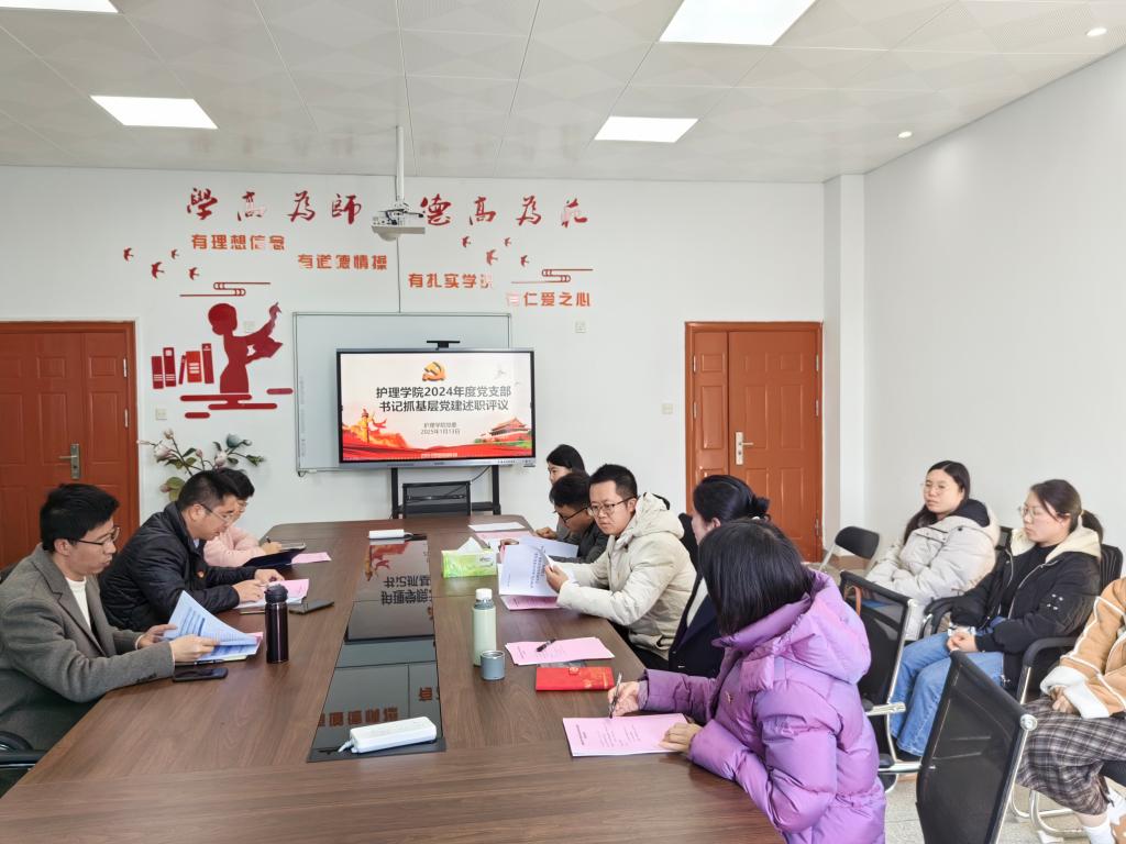 为深入学习贯彻党的二十届三中全会精神,扎实做好基层党建工作,1月13日,护理学院在301会议室召开2024年度党支部书记抓基层党建工作述职评议会议。校党委组织统战部部长谢涛到会指导,学院党委书记林颖峰主持会议。