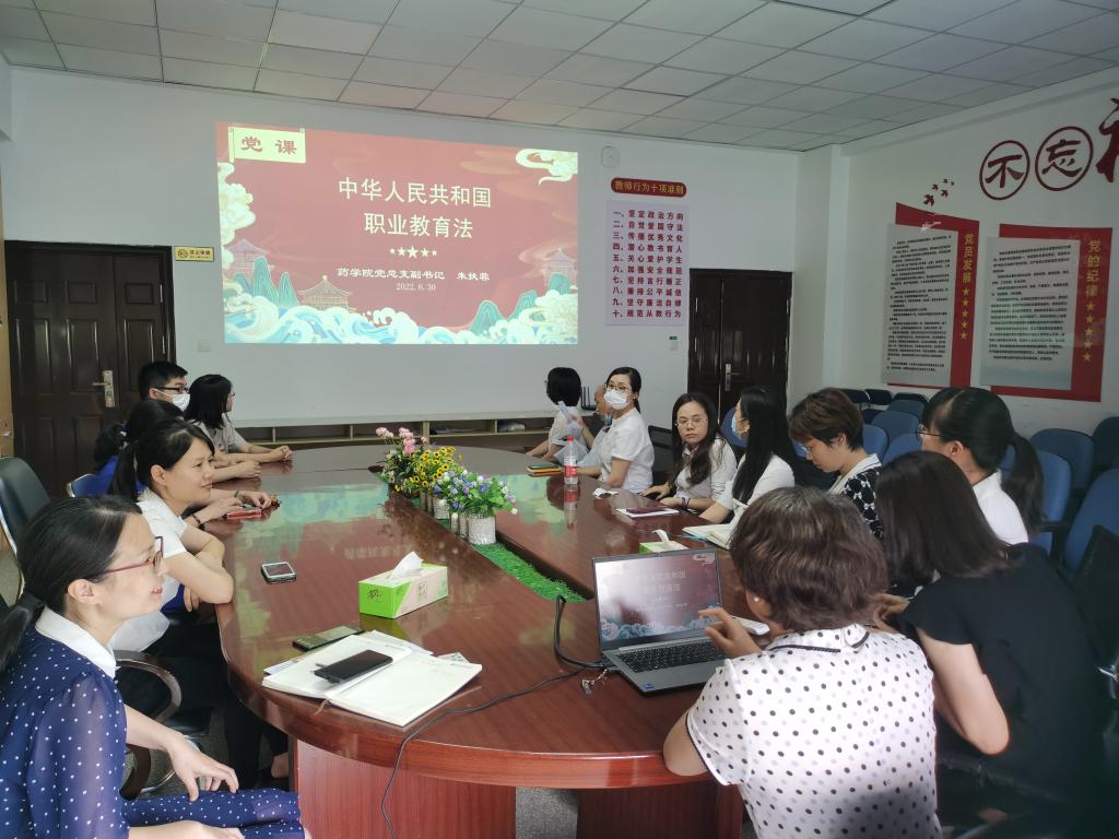 药学院党总支副书记、院长朱扶蓉以《中华人民共和国职业教育法》为主题,为全体党员上了一堂主题鲜明、内容丰富的专题党课。课上,朱扶蓉对新版职业教育法的结构框架进行解读,对比新旧颁布的职业教育法特点,让大家深入了解职业教育法改革的方向,全面理解和准确把握新职业教育法的重要内容,做到学深悟透、知行合一,号召全体党员做新时代的“职教人”。