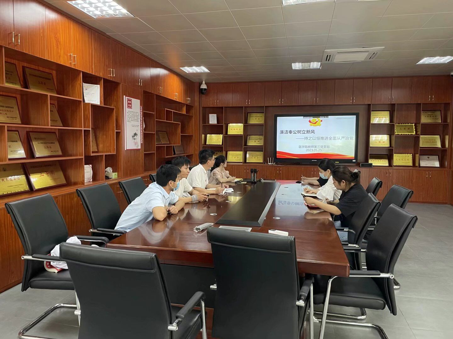 为持续深入开展党风廉政建设,增强支部党员廉洁自律意识,2023年5月23日,医学院教师第三党支部开展专题学习活动,本次专题学习围绕“廉洁奉公树立新风——持之以恒推进全面从严治党”展开,由支部书记陈铭主持。