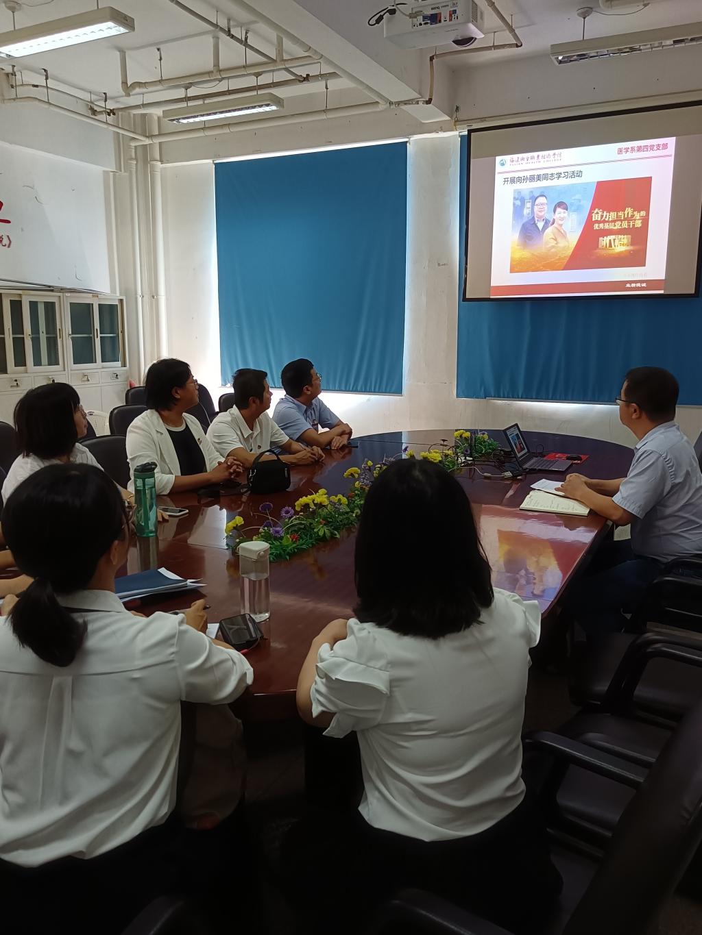 为广泛宣传孙丽美同志的崇高精神,教育引导广大党员、干部以先进典型为榜样,弘扬伟大建党精神,2021年9月9日,医学系第四党支部全体党员一起观看学习孙丽美同志先进事迹视频。