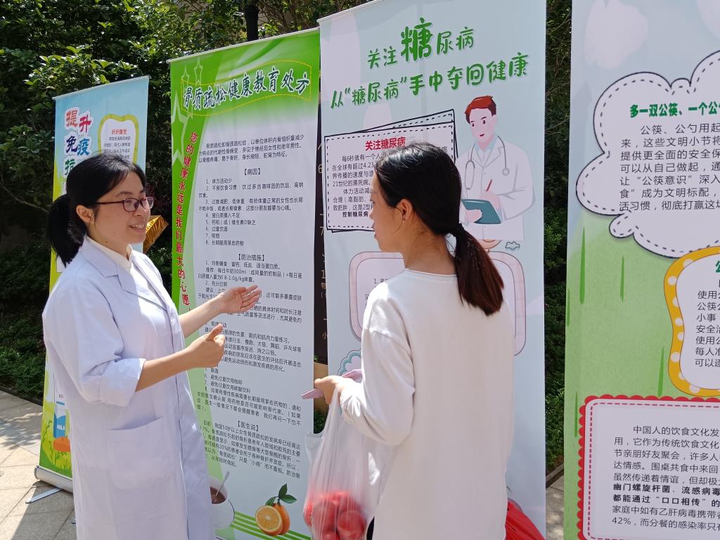 谁言寸草心,报得三春晖。受人滴水之恩,当以涌泉相报。何况是给了我们生命,并含辛茹苦地把我们养大成人的母亲。我们感恩生命,感恩慈祥、善良的母亲。因此,为表达对母亲们的关心和爱护,活动免费为现场母亲们和群众测量血压和血糖,并进行高血压、糖尿病、骨质疏松、下肢静脉曲张、健康饮食与疾病等多方面的健康宣教以及疾病问诊、健康咨询、合理用药指导等服务。“后疫情时代,提升免疫是关键,好好吃饭、好好睡觉、好好运动。多一双公筷、一个公勺,多一份放心安心。”林玉琼老师热情地向到场群众宣传着。