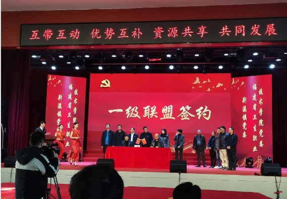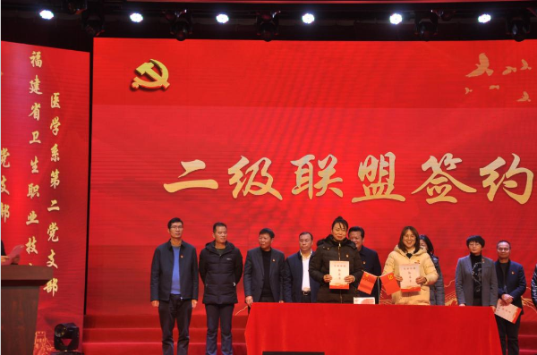 签约仪式上,我校与荆溪镇党委签订一级党建联盟协议,医学系第一、二党支部分别与闽侯县荆溪镇卫生院党支部、亚鹰建筑科技集团党支部签订二级党建联盟协议。