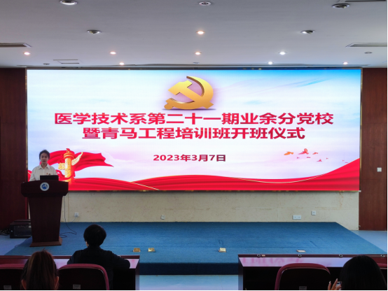 3月7日,医学技术系第二十一期业余分党校暨青马工程培训班开班。医学技术系党总支书记柯琼莺出席开班仪式并作动员讲话。医学技术系副书记林燕,学生党支部书记、团总支书记、团总支副书记以及培训班学员参加开班仪式。