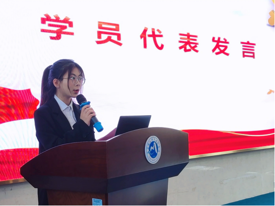 21影像301班王鸿桦作为学员代表发言。她表示,党历来关心青年一代的成长,对青年寄予了殷切的期望。要珍惜本次学习和成长的机会,在学习领悟中坚定理想信念,在奋发有为中践行初心使命,争取在结业时交上一份满意的答卷!