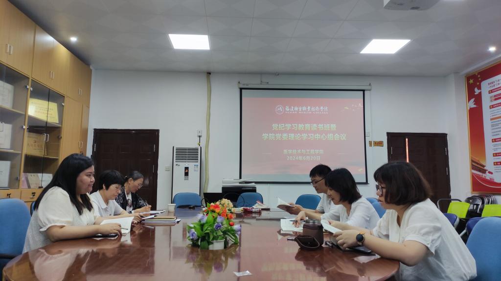 6月20日,医学技术与工程学院召开党纪学习教育读书班第七次学习暨党委理论学习中心组会议,主要学习习近平总书记关于全面加强党的纪律建设的重要论述,专题学习《中国共产党纪律处分条例》第二编分则第十章对违反工作纪律行为的处分。本次学习由学院党委书记柯琼莺主持,学院党委委员参加学习。