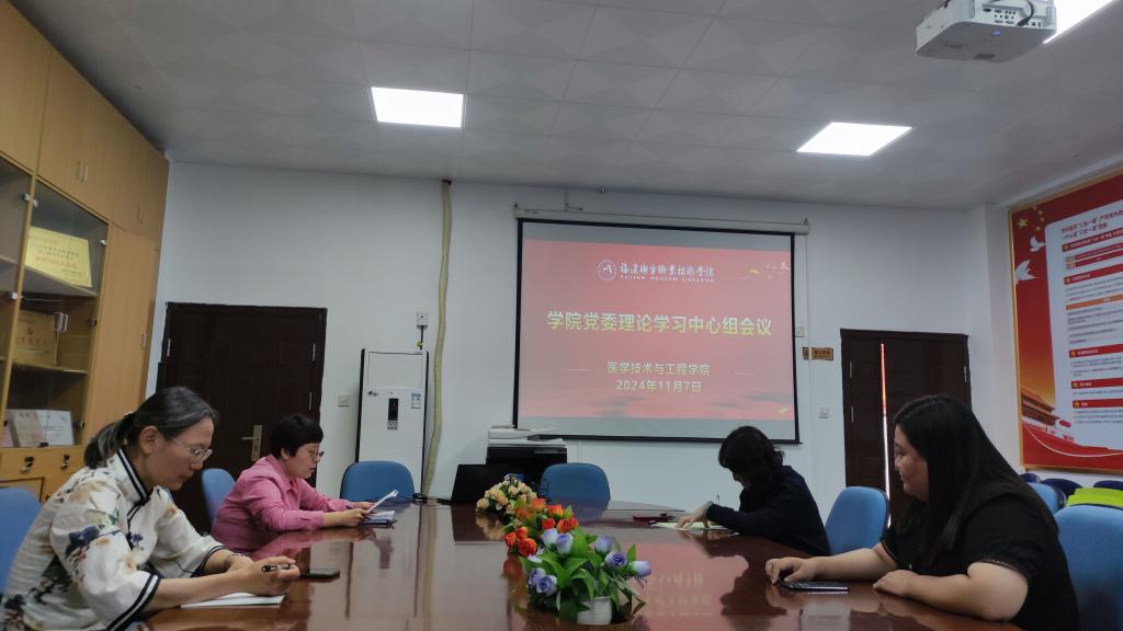 11月7日,医学技术与工程学院召开党委理论学习中心组会议,学习习近平总书记在福建考察、在省部级主要领导干部学习贯彻党的二十届三中全会精神专题研讨班开班式上发表的重要讲话精神,传达省委书记周祖翼在全省领导干部大会上的讲话精神,组织学习学校重要文件。学院党委书记柯琼莺主持会议,学院党委委员参加会议。