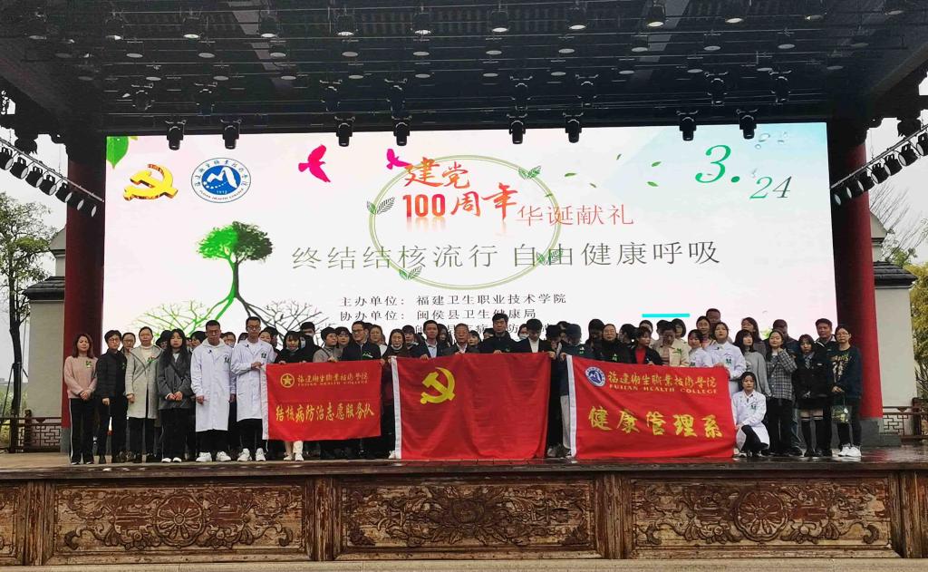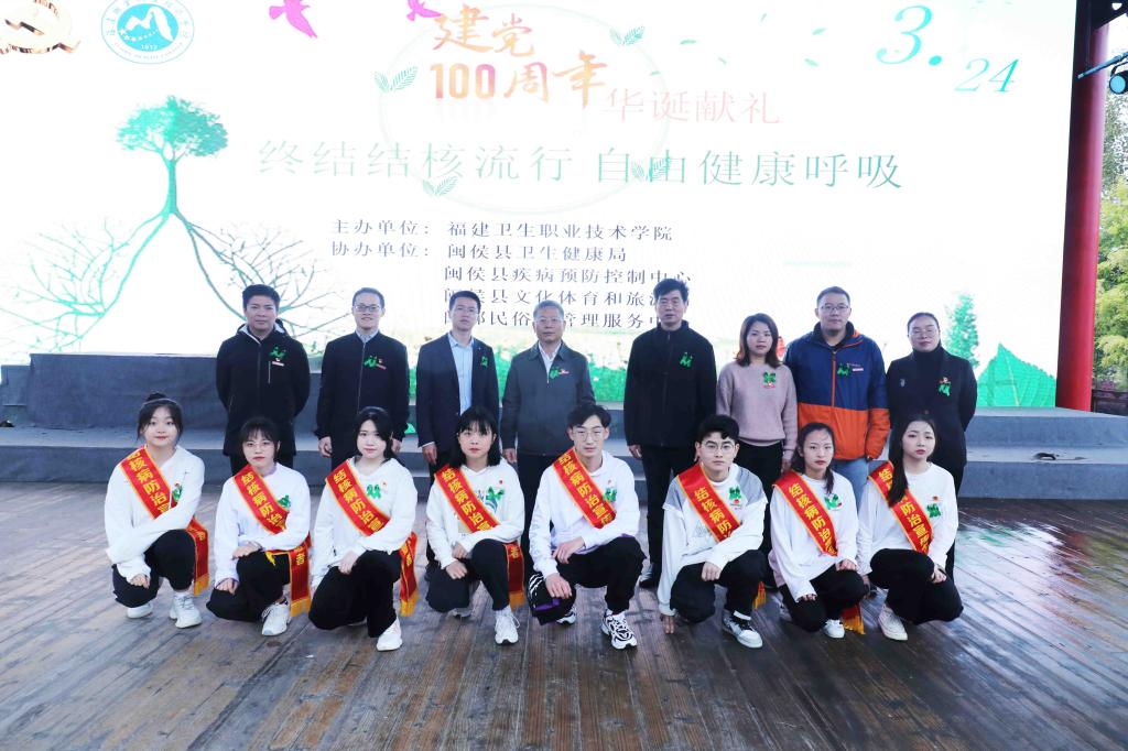 3月21日,第26个“世界防治结核病日”来临之际,福建卫职院联合福建省疾控中心、闽侯县卫生局、闽侯县文旅局、闽侯县疾控中心、闽都民俗园管理服务中心等单位在闽都民俗园举办以“终结结核流行 自由健康呼吸”为主题的结核病防治健康宣教党日活动,以实际行动献礼建党100周年华诞。健康管理系师生党员、学生志愿者和各协办单位领导来宾参加活动。活动由健康管理系党总支第一支部承办,副校长陈贞健以普通党员身份参加活动。
