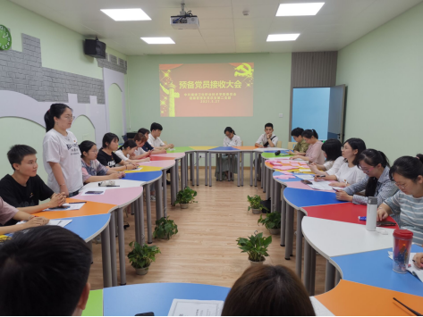 2021年05月27日下午,健康管理系党总支第二支部在A楼心理健康教育中心会议室召开接收预备党员支部大会。大会讨论并审议谢文成等15位发展对象的入党问题,会议由支部书记冯瑞华同志主持,支部全体党员参加会议。