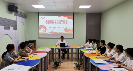 重温党史,汲取信仰力量,知史爱党,续写时代篇章。健康管理系党总支书记开展《追忆入党初心 过好政治生日》专题党课,第一支部、第二支部书记分别开展《重温党的百年光辉历程,深刻感悟党的初心使命》主题党课,进一步了解党的光辉历程、增强爱党爱国热情,厚植爱国主义情怀,传承红色革命精神,勇担使命和担当,在新时代的征程中奋前行。