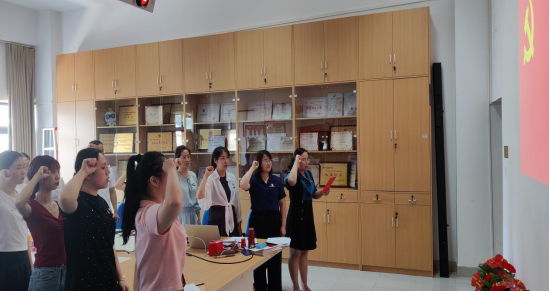 第二党支部召开预备党员转正大会,讨论审议10名预备党员按期转正。党总支组织6月入党的教师党员李芳琴、夏雪梅与按期转正的学生党员一起过政治生日,“我志愿加入中国共产党,拥护党的纲领,遵守党的章程,履行党员义务……”,铿锵的誓词,振奋人心,让党员们热血沸腾,坚定理想信念和强化党性。重温入党誓词,强化党员责任意识,提高党员党性修养,激励每个党员不忘初心、牢记使命,增强“四个意识”、坚定“四个自信”、做到“两个维护”,努力发挥党员先锋模范作用。