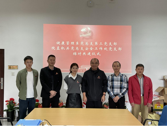 为进一步探索基层党建工作新模式, 努力形成党组织之间优势互补、协同发展的党建新格局,提升党支部战斗堡垒作用。11月8日,健康管理系党总支第三支部与院直机关党总支安全工作处党支部于图书馆五楼会议室举行支部结对共建签约仪式。健康管理系党总支书记黄曦、健康管理系党总支副书记吴燕玲、安全工作处副处长黄兴宇以及双方共建支部的党员代表参加了共建仪式。仪式由王开晔同志主持。