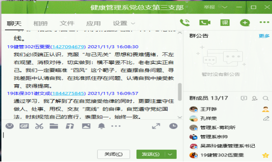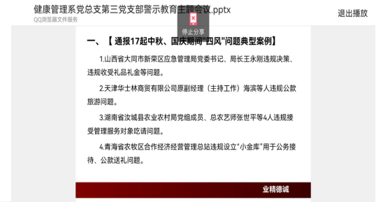 为深入贯彻落实全面从严治党要求,加强支部党风廉政建设和纪律建设。11月3日,健康管理系党总支第三支部线上开展常态化警示教育专题会议。会议由支部书记王开晔主持,支部全体党员参加。