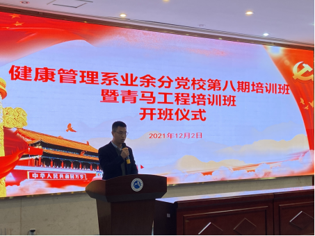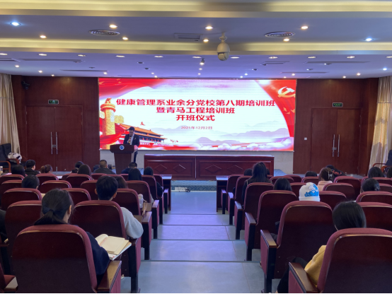 为进一步提高入党积极分子和青马工程培训班学员的政治理论水平,强化政治素养,把好发展党员入口关。2021年12月2日中午,健康管理系业余分党校第八期培训班暨青马工程培训班开班仪式在实训楼四楼会议厅成功举行。健康管理系党总支书记黄曦书记、党总支副书记吴燕玲书记、支部书记、辅导员以及本期128名培训学员共同参与了此次开班仪式。