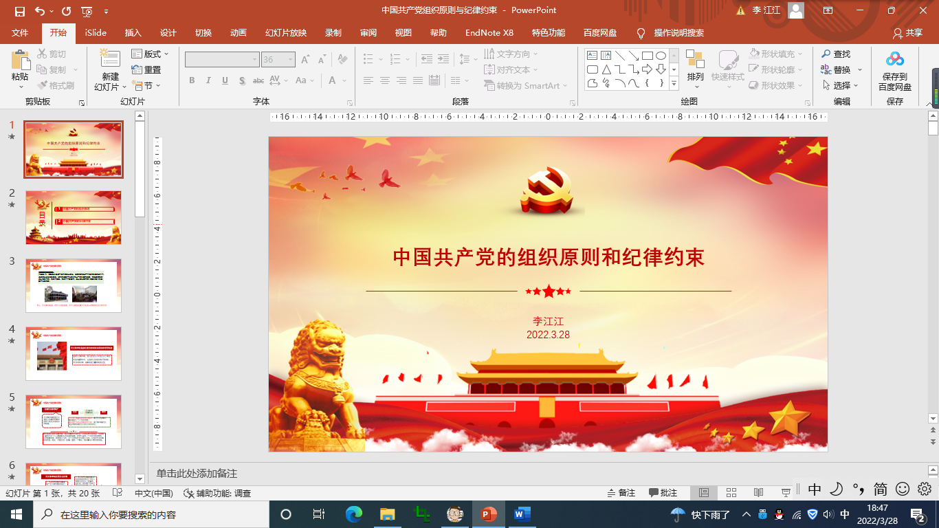 为了让同学们对中国共产党的组织原和纪律则有更清楚的认知,3月28日,在线上开展了主题为“中国共产党的组织原则和纪律”主题党课。本次由健康管理系辅导员李江江主讲,健康管理系业余分党校第八期培训班暨青马工程培训班全体学员参加此次党课。