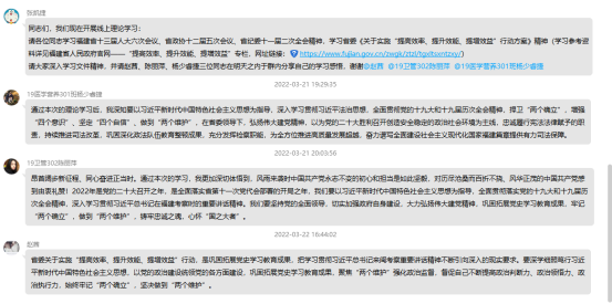 2022年3月22日,健康管理系第二支部通过网络平台学习了福建省十三届人大六次会议、省政协十二届五次会议、省纪委十一届二次全会精神,学习省委《关于实施“提高效率、提升效能、提增效益”行动方案》精神,全体党员参加会议。