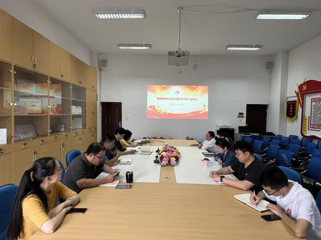 8月30日,健康管理系党总支2022年第9次理论学习中心组会议在系部会议室召开。学习《习近平向世界职业技术教育发展大会致贺信》、《习近平经济思想学习纲要》、《关于在高校思想政治理论课中进一步加强习近平新时代中国特色社会主义思想教育相关工作通知》和《教育部关于做好庆祝2022年教师节有关工作的通知》等内容。