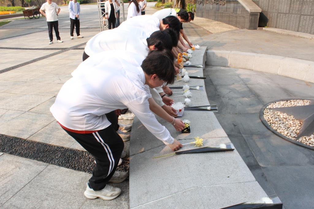 花束敬献英烈,哀思祭奠忠魂。支部全体党员在福州抗日志士纪念墙前庄严列队、鞠躬默哀,敬献手工制作的纸扎花束,追思革命先烈的丰功伟绩,表达深切缅怀和敬仰之情。福州抗日志士纪念墙镌刻8700多位福州籍抗日志士的芳名,这是两岸目前镌刻国共两党抗日志士英名最多的大型抗日纪念设施。展现福州人民艰苦卓绝的抗战历史和百折不挠的全民族抗战精神。本次敬献的纸扎花束均由公共卫生与健康管理学院学生会安教部组织学生制作,他们认真学习了纸扎花篮花束的制作方法,精心制作着各种花朵,用彩纸细心地折叠、剪裁、粘贴,每一片花瓣都蕴含着他们的深情与敬意,表达对革命先烈的敬仰。