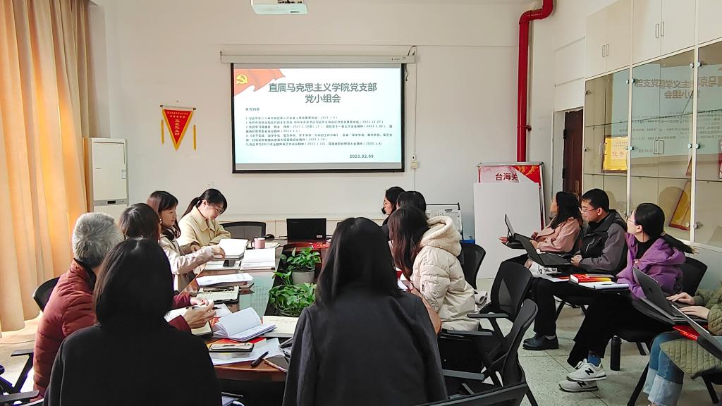 2023年2月9日,直属马克思主义学院党支部开展2023年第一次党小组理论学习会议,会议由党支部副书记来朋珍主持。