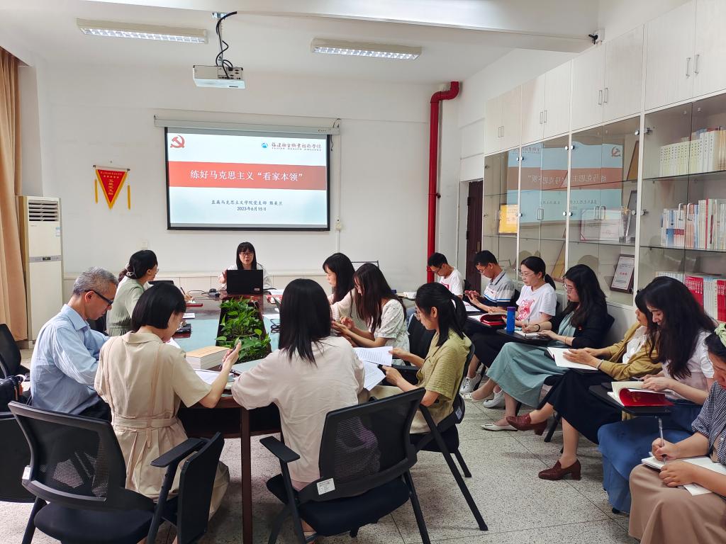 2023年6月15日,直属马克思主义学院党支部书记熊美兰以《练好马克思主义“看家本领”》为题,为党支部全体教师党员讲授专题党课,校党委书记曾武祈对此次党课开展指导。