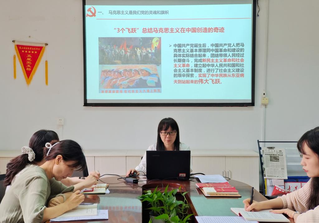 熊美兰紧密围绕“马克思主义是我们党的灵魂和旗帜”“习近平新时代中国特色社会主义思想是马克思主义的“中国形态”“守正创新练好马克思主义“看家本领”是开好讲好思政课的关键”三个方面展开论述,主题鲜明,旁征博引,为全体教师党员带来一场深刻的党性教育和精神洗礼。