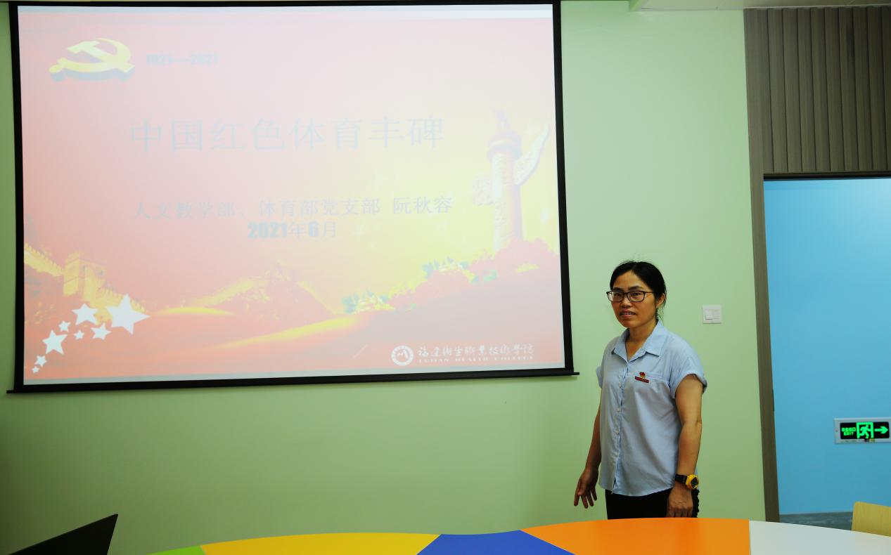 6月17日上午,直属人文教学部和体育部党支部书记阮秋容同志组织在支部开展“中国红色体育丰碑”专题党课,全体支部党员同志参会学习。