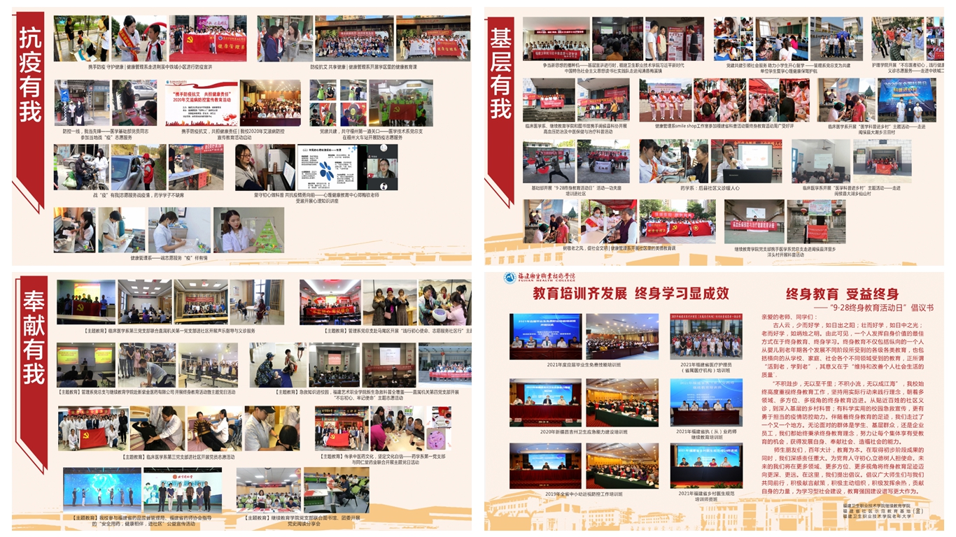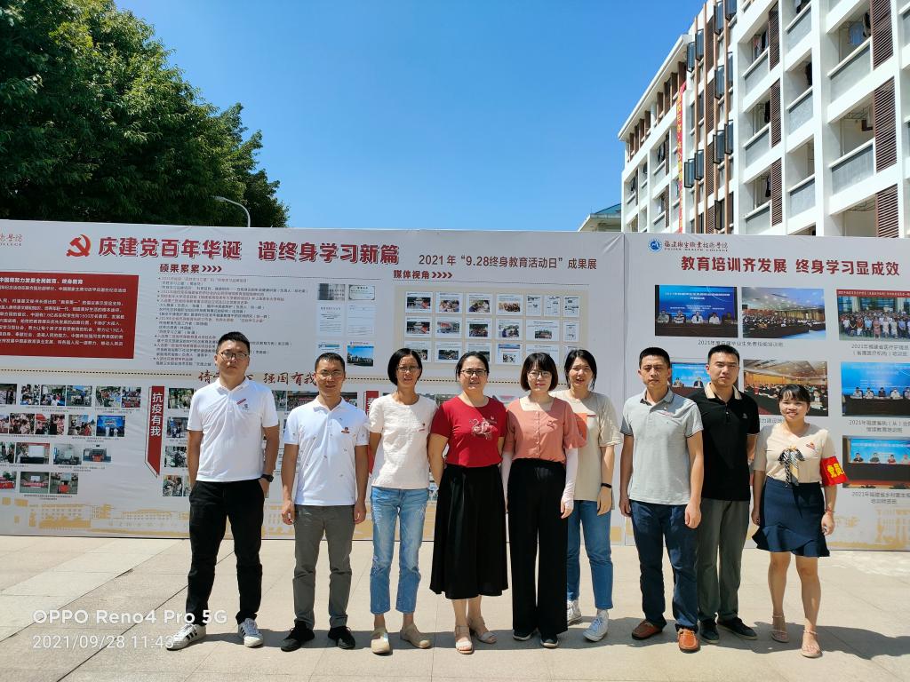 为深入贯彻落实福建省终身教育促进委员会《关于开展2021年“9·28终身教育活动日”暨全民终身学习活动周的通知》,我校围绕“庆建党百年华诞 谱终身学习新篇”的主题,组织开展了2021年全民终身学习活动周活动。