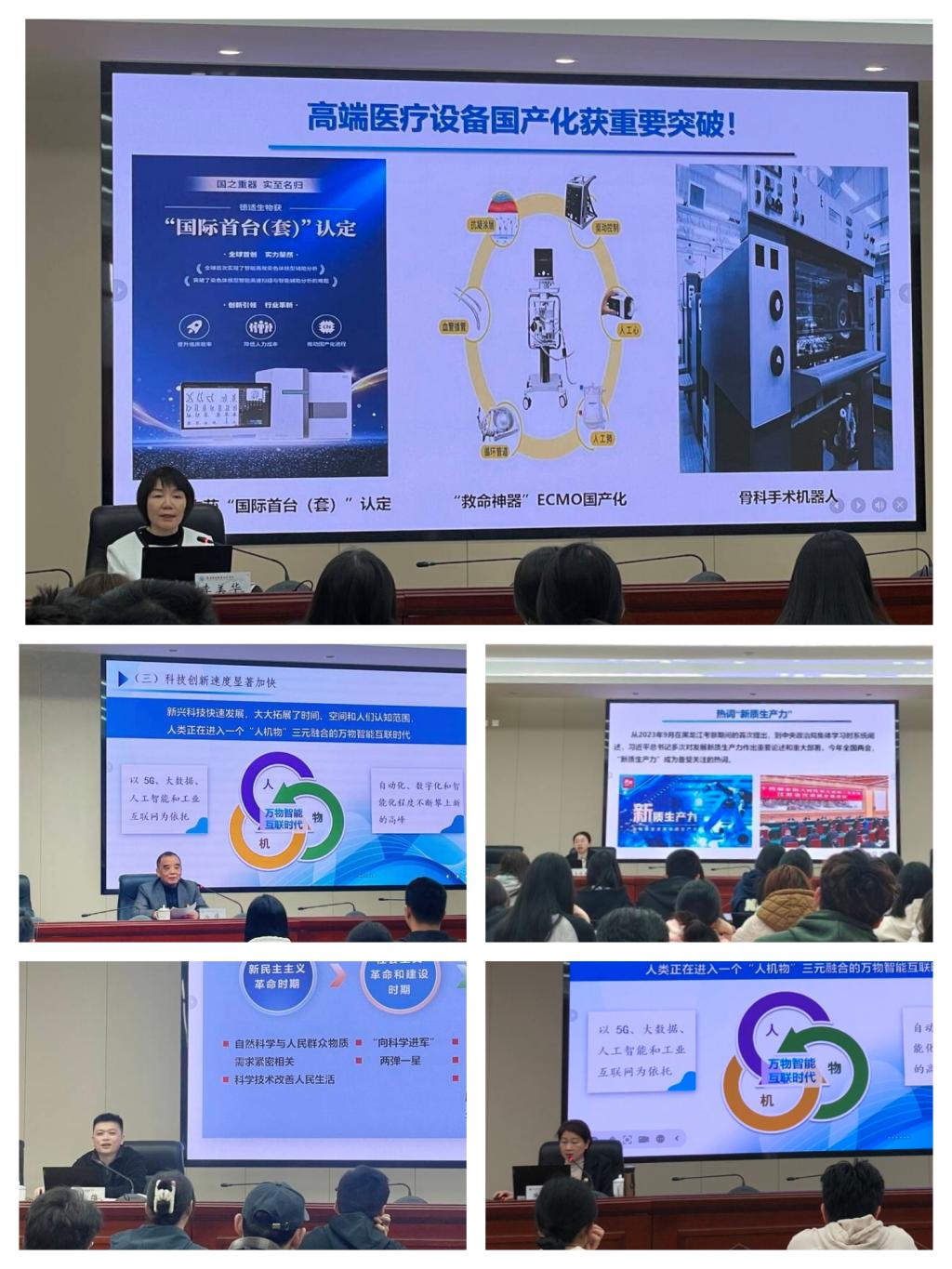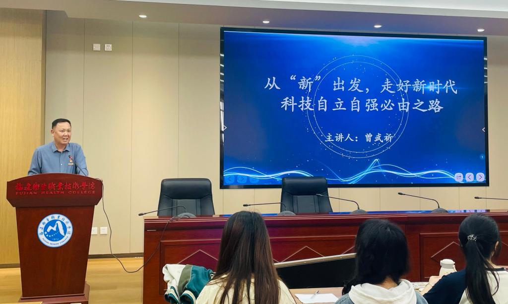 曾武祈以“从新出发,走好新时代科技自立自强必由之路”为题,结合习近平总书记关于新质生产力的重要论述,梳理了当今世界科技革命的全新特点、党和国家面临的机遇挑战及突围路径,介绍了我国在载人航天、人工智能、医疗器械等前沿领域不断涌现的创新成果。他指出,科技创新的前沿永无止境,科技创新的前景鼓舞人心。今天的中国,正向“新”而行、向“新”而进。我校师生应树立开阔的国际视野,坚定信心、砥砺奋进,时不我待、只争朝夕,勇当科技创新发展的生力军,以新质生产力为现代医学创造更多可能。