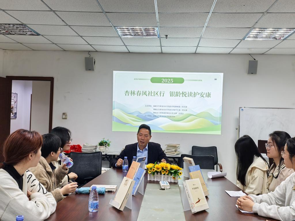 近日,在学雷锋纪念日来临之际,一场别开生面的“杏林春风社区行,银龄悦读护安康”敬老科普义诊及图书捐赠公益活动暨主题党日活动在福州市闽侯县世茂御龙湾社区举行。此次活动由我校医学院教师第三党支部、学生第二党支部,院直机关图书馆、现教中心党支部,闽侯县甘蔗街道滨城社区党支部等多方协作开展,旨在响应国家“健康中国2030”战略规划,弘扬中医药传统文化,提升老年群体健康素养,丰富社区老年人的精神生活。