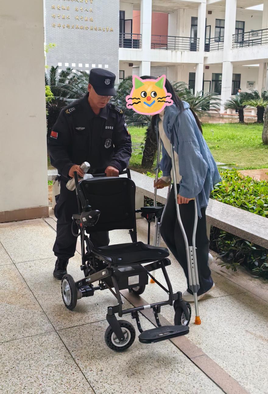 该考生因伤坐轮椅入校,看着在崇教楼四楼的考室心里犯了难。保安崔心衔和徐建林见状,主动上前伸出援手,在征得同意后,背起考生上了楼,又在考试结束后将其背下楼。这一举动不仅体现了学校对考生的关心和支持,更展示了学校始终贯彻服务育人理念,坚持德育工作走深走实。