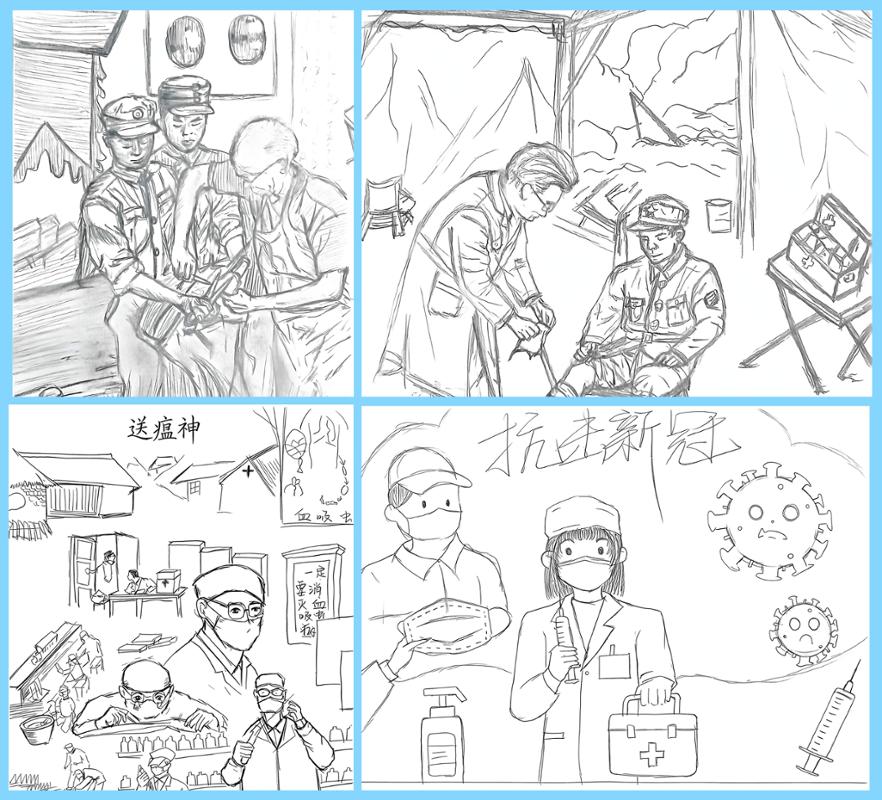 《送瘟神》《肝胆照初心》《支援边疆》等主题画作,再现了消灭血吸虫病的壮阔历程,勾勒出吴孟超院士持刀救人、大爱无疆的医者身影,定格住福州助产学校支边群体扎根基层、守护妇幼健康的动人瞬间。《红医赋》《傅连暲颂》《掌灯者》等诗歌作品,字里行间满是对红医先辈救死扶伤初心的敬仰,诉说着新时代青年传承红医薪火的坚定决心。