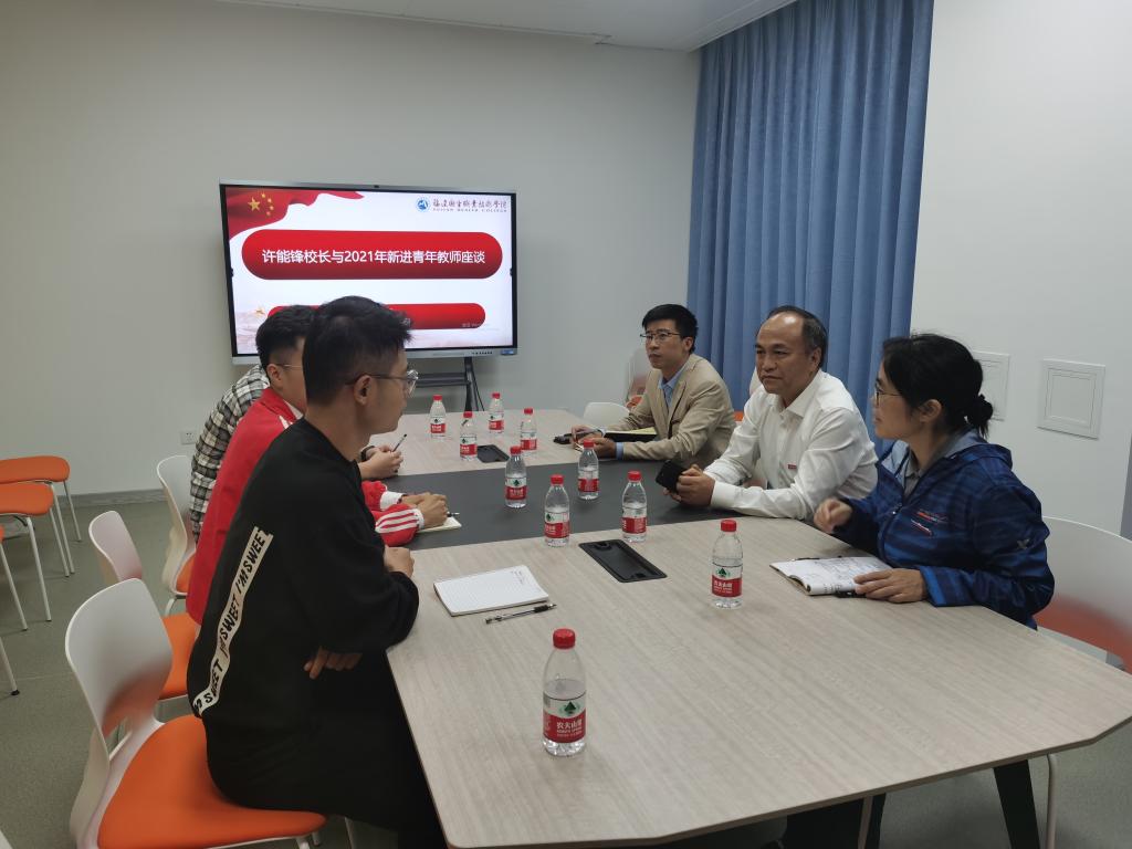 许能锋还与体育部今年新进三位教师进行了座谈。他认为,青年教师要以“敬”“静”“进”“净”的心态面对工作,以陶行知的每日四问勉励自身。