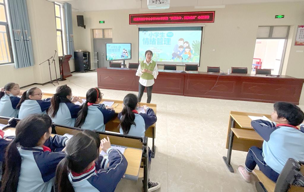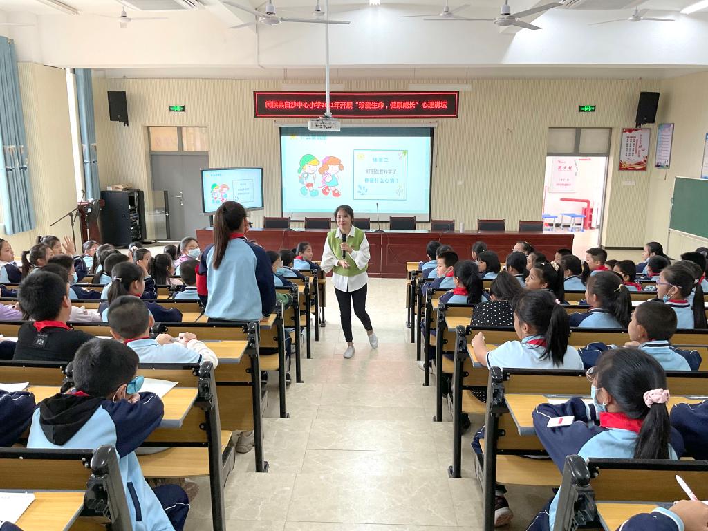 塑造阳光心灵,助力健康成长。心理健康教研室的夏雪梅老师为四至六年级的学生开展“珍爱生命,健康成长”心理讲座。讲座中,夏雪梅用生动的例子与学生问答互动,加深学生对情绪的认识,同时也让他们学会了如何运用积极、正确的方式管理情绪,给学生们生理和心理以正确导向,培育健康快乐、积极向上的心态。