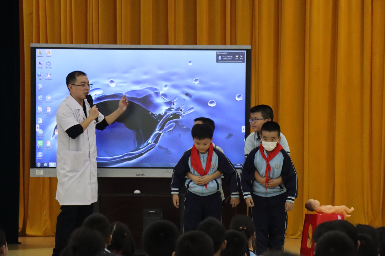 掌握急救技能,呵护孩童成长。健康管理系团总支红十字学生分会的志愿者们为学生讲解环形包扎和螺旋包扎的技巧要点并进行现场操作;同时还示范了心肺复苏的步骤,重点讲解抢救的黄金时间、如何判断患者意识及抢救方法和措施,强调心肺复苏中挽救生命关键的“黄金时间”,让学生了解相关的医疗急救常识,培养学生“和谐、关爱、诚信、友善”的社会主义核心价值观和人道主义精神。