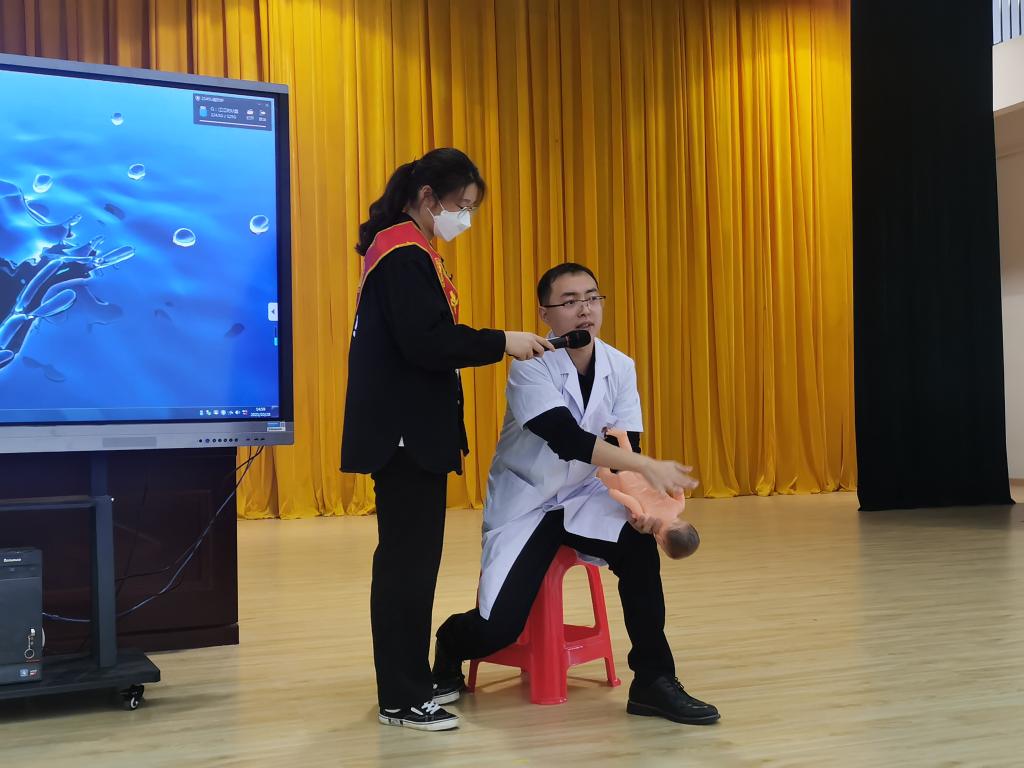 托起生命之舟,“救”在“医”瞬间。医学营养教研室王国浩老师为学生带来“海姆立克急救法”技能培训,通过现场演练和一对一示范,详细讲解“海姆立克急救”的要点,纠正和指导大家在操作中存在的问题,帮助大家更好的掌握急救方法。学生们积极踊跃参与,反复学习动作要领,安全意识和急救技能得到进一步提高。